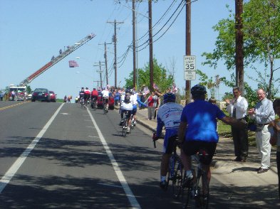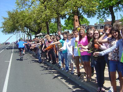 greeting awaited the riders. More than 1,000 students lined several blocks