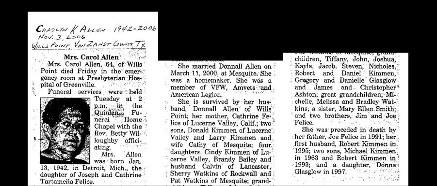 Carol Allen Jan.13, 1942 - Nov. 3, 2006