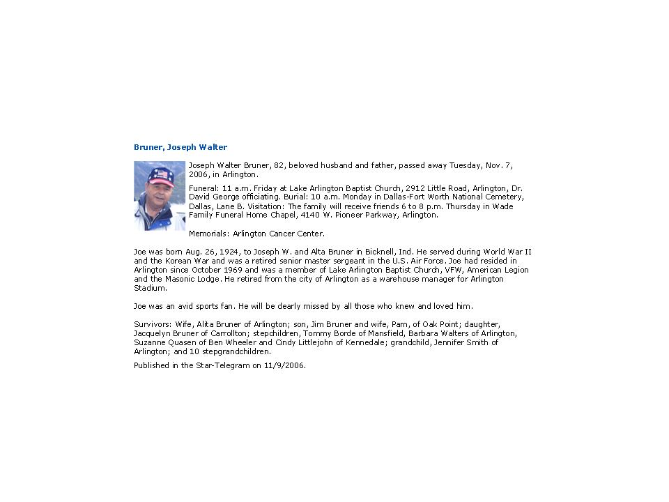 Last residence: Arlington Texas and/or Kansas City MO